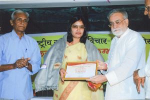 शिक्षा में अनवरत अपनी उत्कृष्ट सेवा देने ,नवीन विचार,तथा लगातार बेटियों को पढ़ने हेतु प्रेरित करने के लिए वर्ष 2017 में राष्ट्रपति से राष्ट्रीय शिक्षक पुरस्कार,प्राप्त हुआ।शहर में शिक्षा के क्षेत्र में एक अलग पहचान बनी।जबकि मनोरंजक बात यह थी कि मेरे परिवार में सभी शिक्षक थे ,तो मैं बी एड करने के बाद भी शिक्षिका नहीं बनना चाहती थी।प्रशासनिक सेवा में जाने की तम्मना थी लेकिन तब न तो आज की तरह हर वर्ष परीक्षा होती थी न ही राज्य स्तरीय परीक्षा में सही चयन।इन्ही कारणों से बिहार में आयोजित बाल विकास परियोजना पदाधिकारी में दो परीक्षा उत्तीर्ण होने के बावजूद साक्षात्कार में छंट गयी।तब मन में एक ख्याल आता रहा कि यदि पैसा देकर नौकरी में जाना पड़ा तो मुझसा बेईमान कोई नही और यदि बिना किसी घूस के नौकरी मिली तो मुझसा ईमानदार कोई नहीं। एक