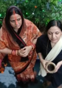 छठ महापर्व में सूर्यदेव के साथ-साथ, ‘उषा’ और ‘प्रत्युषा’ की भी उपासना की जाती है| उषा का अर्थ होता है प्रातःकाल, और प्रत्युषा का अर्थ सांध्यकाल| उषा तथा प्रत्युषा – जो छठी मैया के नाम से लोकप्रिय हैं – सुर्यदेव की संगिनी मानी जाती हैं| यही कारण है कि छठ महापर्व के दौरान, उपासक अस्तगामी और उगते सूर्य की भी आराधना करते हैं|